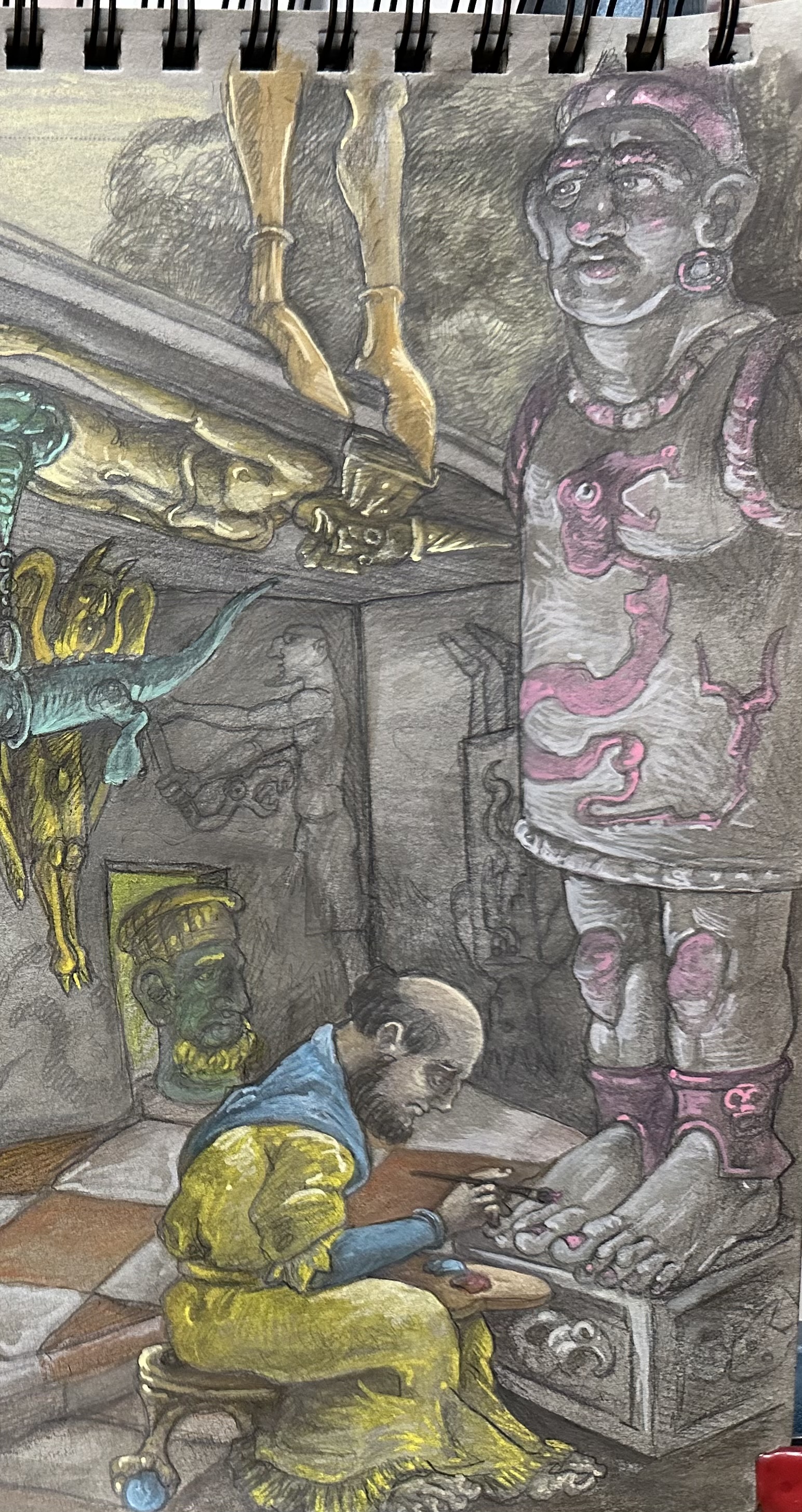 The Idol-maker’s shop, sketch book 2024detail of sketchbook drawing