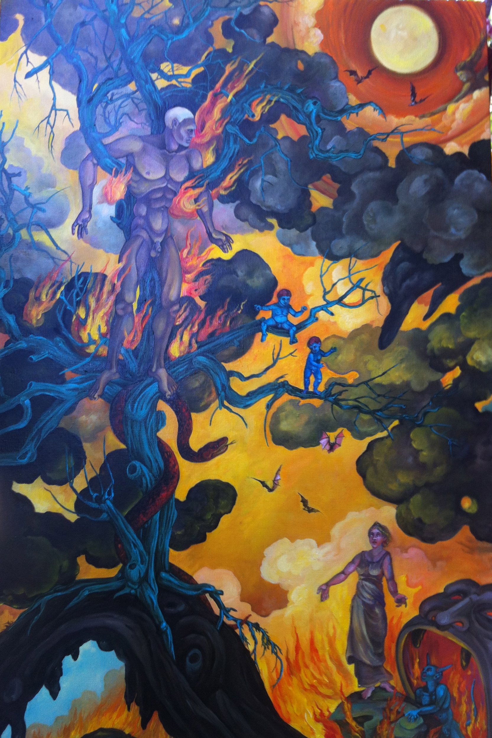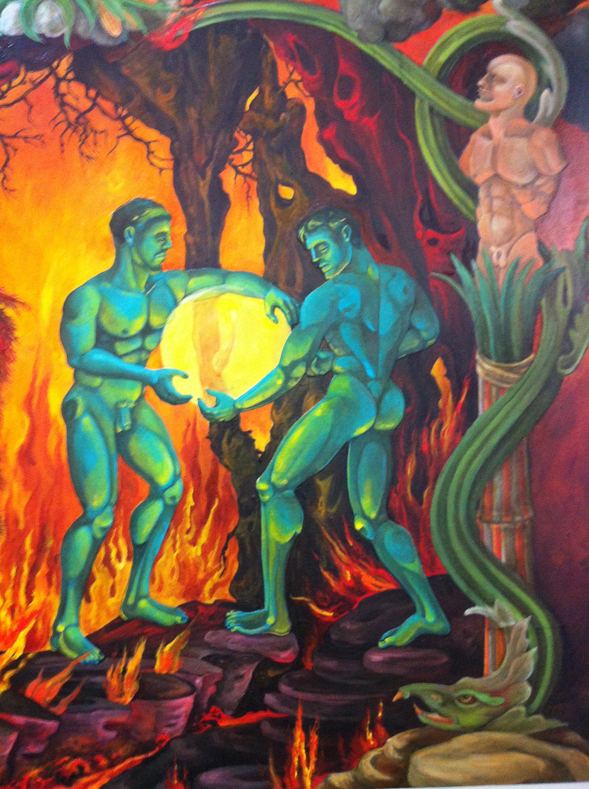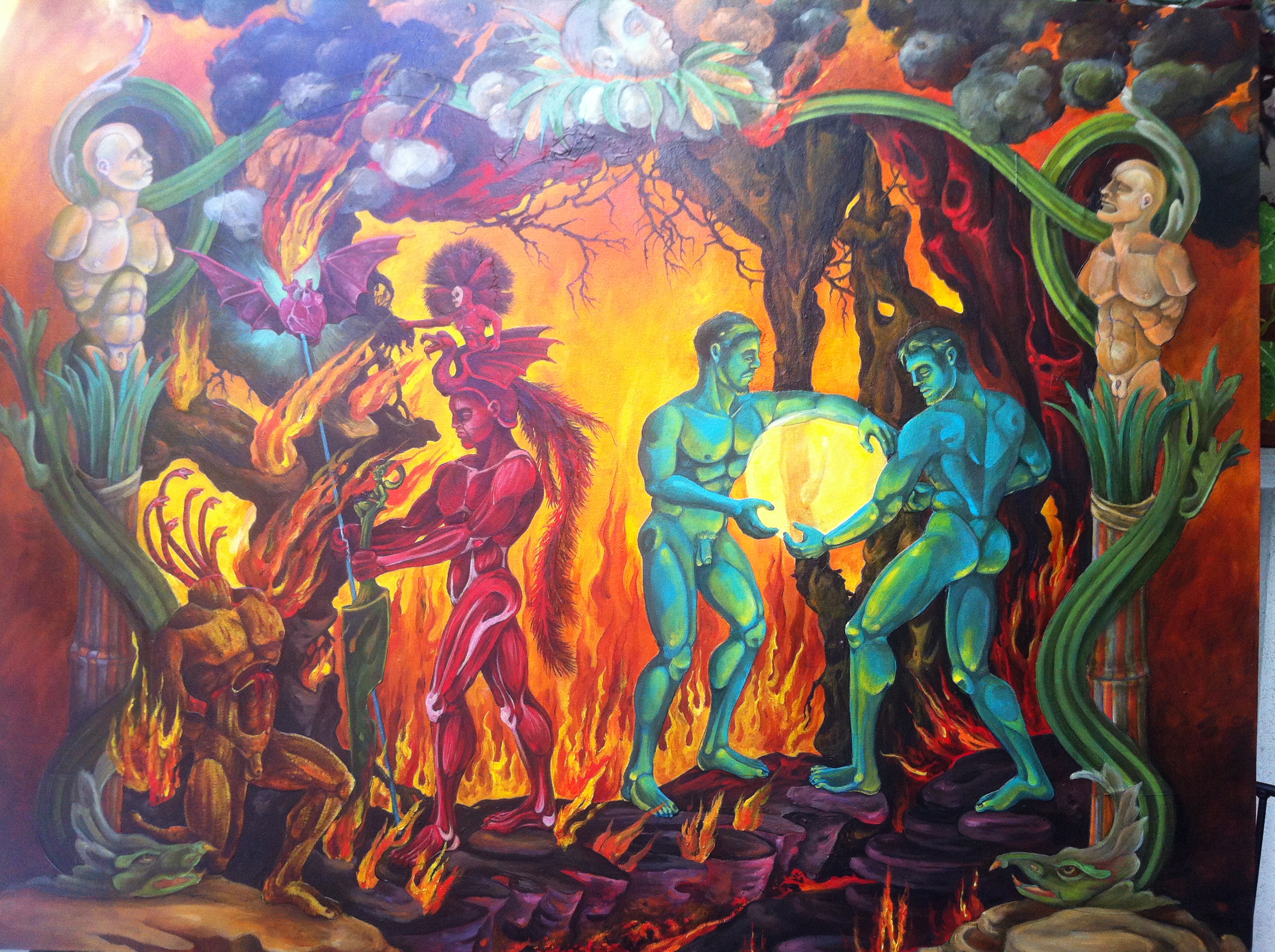 Fateful Encounter at the Axis Mundi 2012 oil on canvas 20″by30″