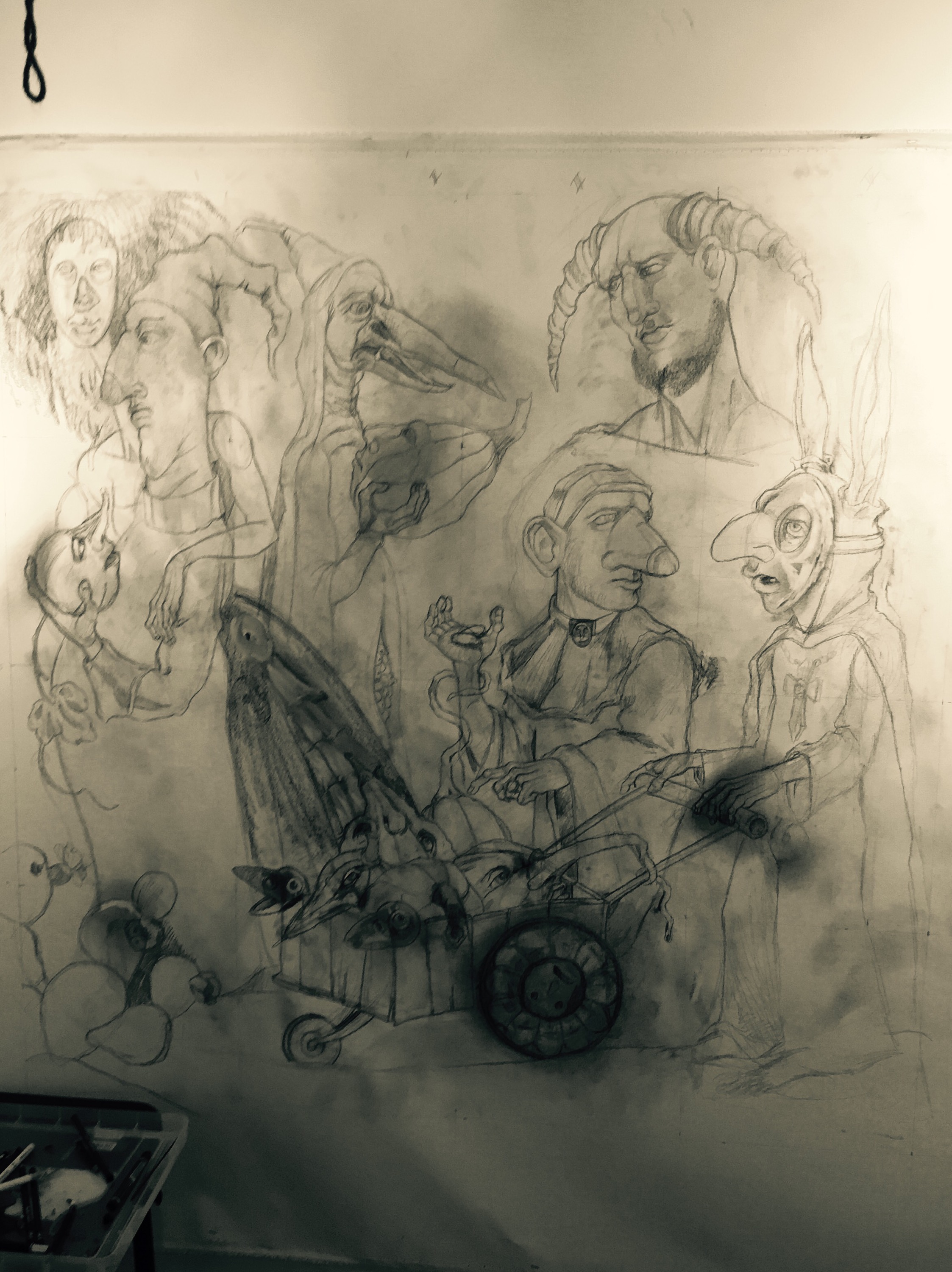 My progress thus far is drawing out The Goblin Market , sadly it isn’t photographing well, I need to improve the rather paltry lighting . But so far it looks like this: