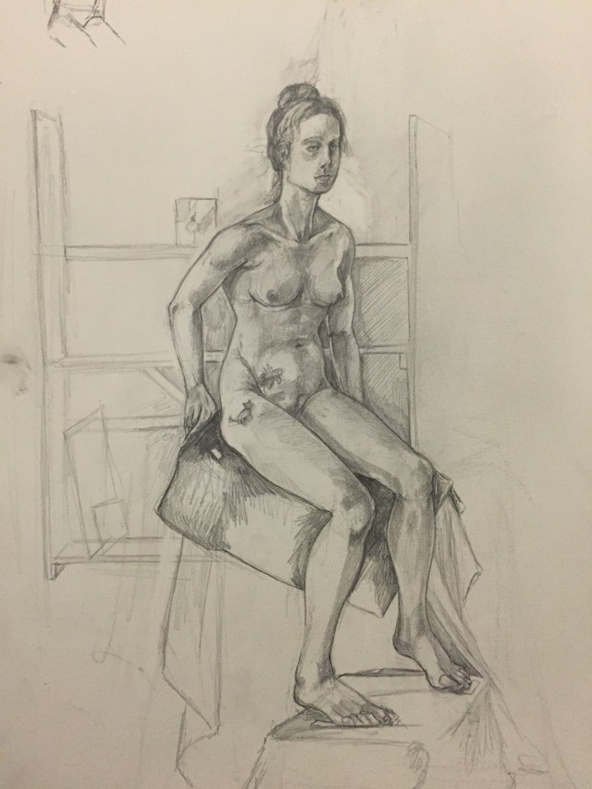 The new painting , perhaps defiantly, once again seems to defy conventional /sanctioned/approved space , not unlike in my mind, the Roman example above ( or Master Blake). It is very much in the hatched stage and how light defines the space , if at all, is to be seen. But for now I’m seeing it through .