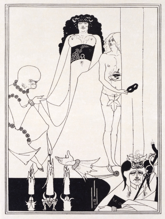 Previous Image Next Image 2014HD6003 E.430-1972 Salome, Plate IX- Enter Herodias from a portfolio of 17 plates; by Aubrey Beardsley (1872-98); published by John Lane; English; 1907. Line block print.