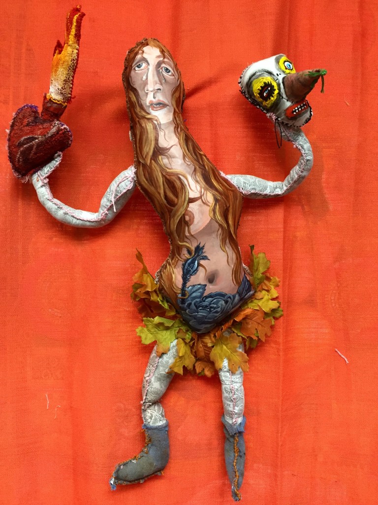Previous Image Next Image IMG_1296 “The Magdalene” 2017 mixed media: painted recycled fabric, embroidery floss, artificial foliage, polyfill approx. 26x19x6″