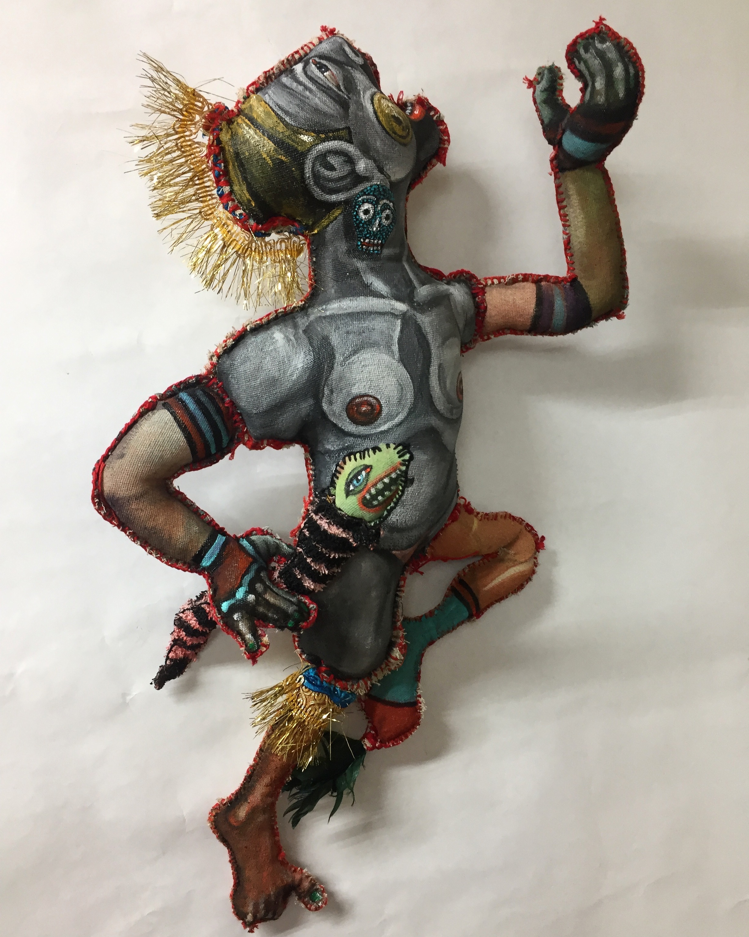 Previous Image Next Image Coyolxauhqui “Coyolxauhqui Reassembled” 2017 Mixed media: acrylic paint, recycled rag, thread, fiber fill Approx. 21 by 12 inches