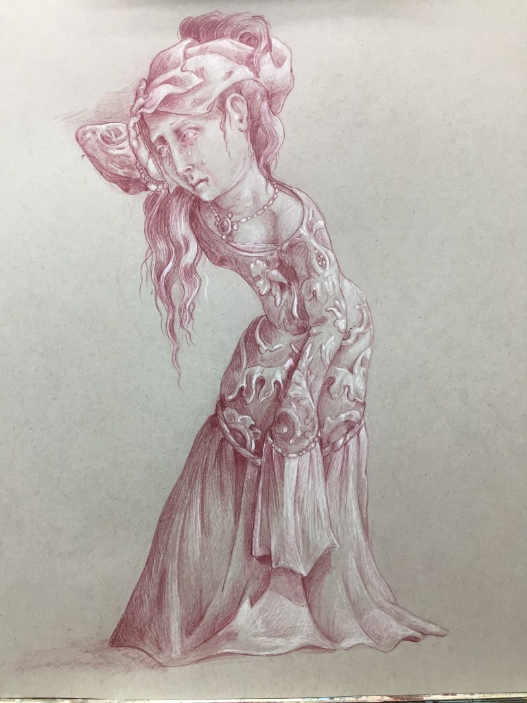 Previous Image The Magdalene sanguine “The Magdalene”, study 2017 Sanguine and white pencil on toned paper Approx. 15 by 18 inches Private collection