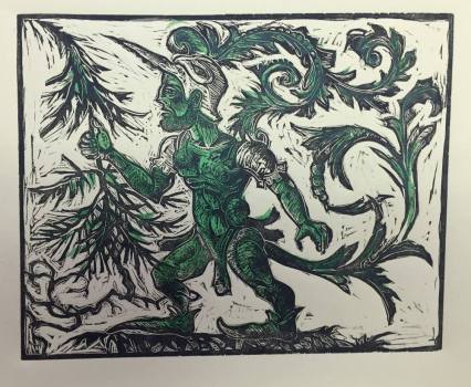 Previous Image Next Image 18193028_10212284771064019_3866632520569132624_o The Green Knight relief print on paper
