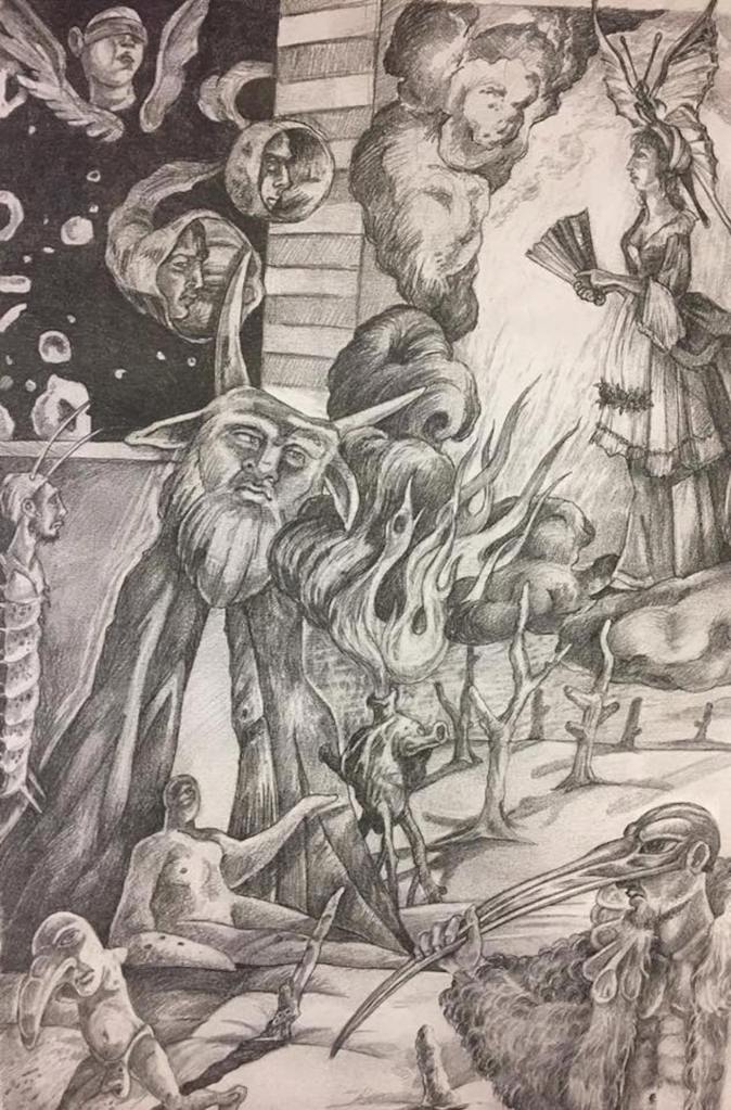 Previous Image Next Image Greco_Eurydice’s Response Preliminary sketch for “Eurydice’s Response”, faux tapestry.