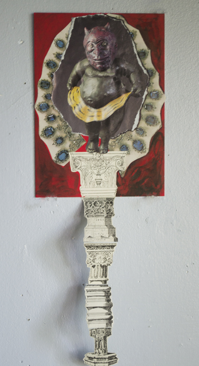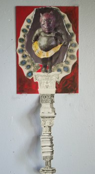 Jeannie Frias “Little D on His Pedestal” 2017 Mixed media 14 by 5 ”