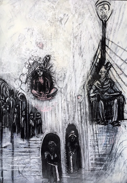 Previous Image Next Image MatushevitzRandi2_Judge_2016_30inx24in Randi Matushevitz “Judges” 2016 charcoal, pastel, spray paint image size 29 by 22″