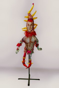 Previous Image Next Image IMG_1796 “Pierrot” 2018 Mixed media:recycled fiber, feathers, acrylic paint on canvas, embroidery floss, poly-fil