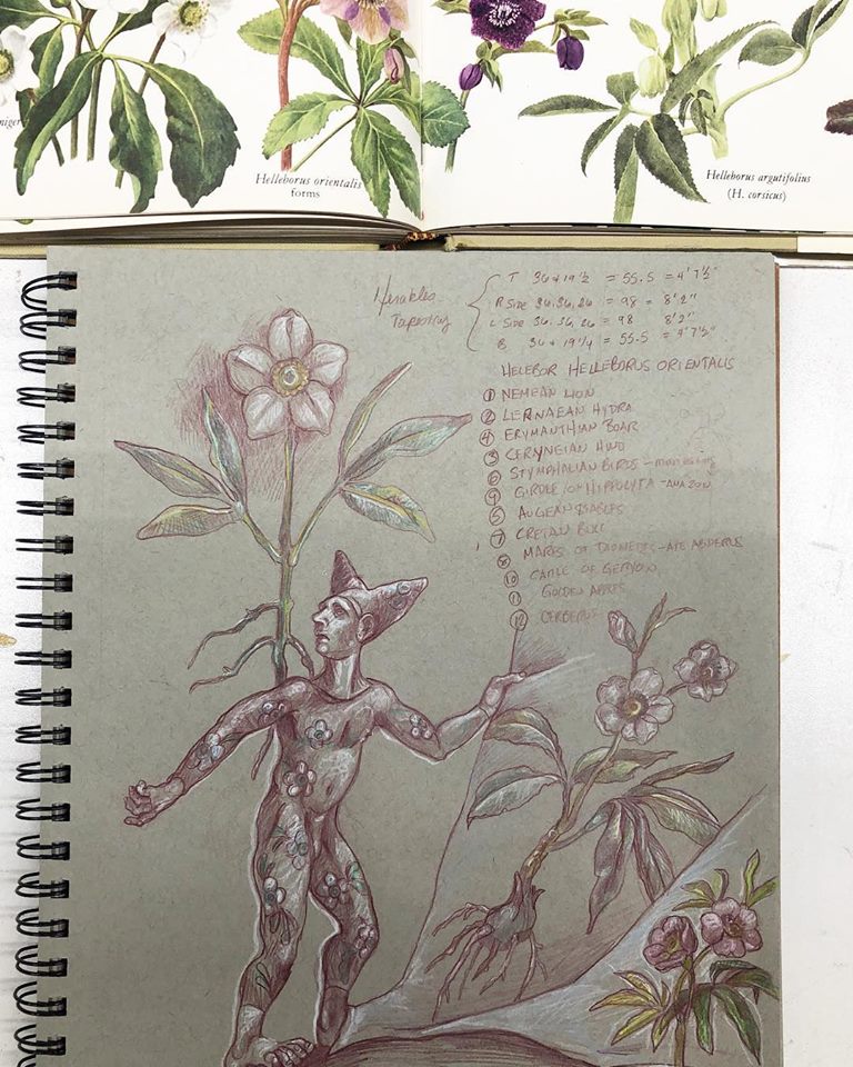Previous Image Next Image 42680660_10216688372991315_4622304826850541568_n Notebook sketches of Helleborus, thus far unused.