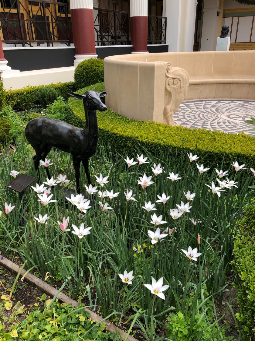 Between visiting darkened galleries devoted to Persephone and her vassals my sister and I popped in and out to delight in the gardens the Villa is so famous for . Glorious spring ephemerals were popping out of the ground as if the dark queen herself was emerging.