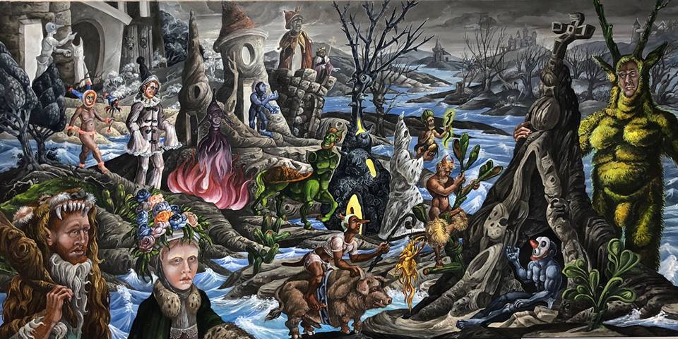 Previous Image Next Image 31189606_10215469493240083_512448967745732608_n The Temptations of St. Anthony of the Desert 2018 Oil on panel 18 by 36 inches