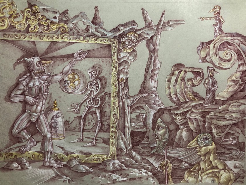 It is I think the immediacy of drawing , that and the ability to really noodle down with detailed fine line work that so appeals to me. Line is everything to me, and I think it is this instinctive preference that separates me from painters in general – for even with a brush in hand I feel as if I am drawing .