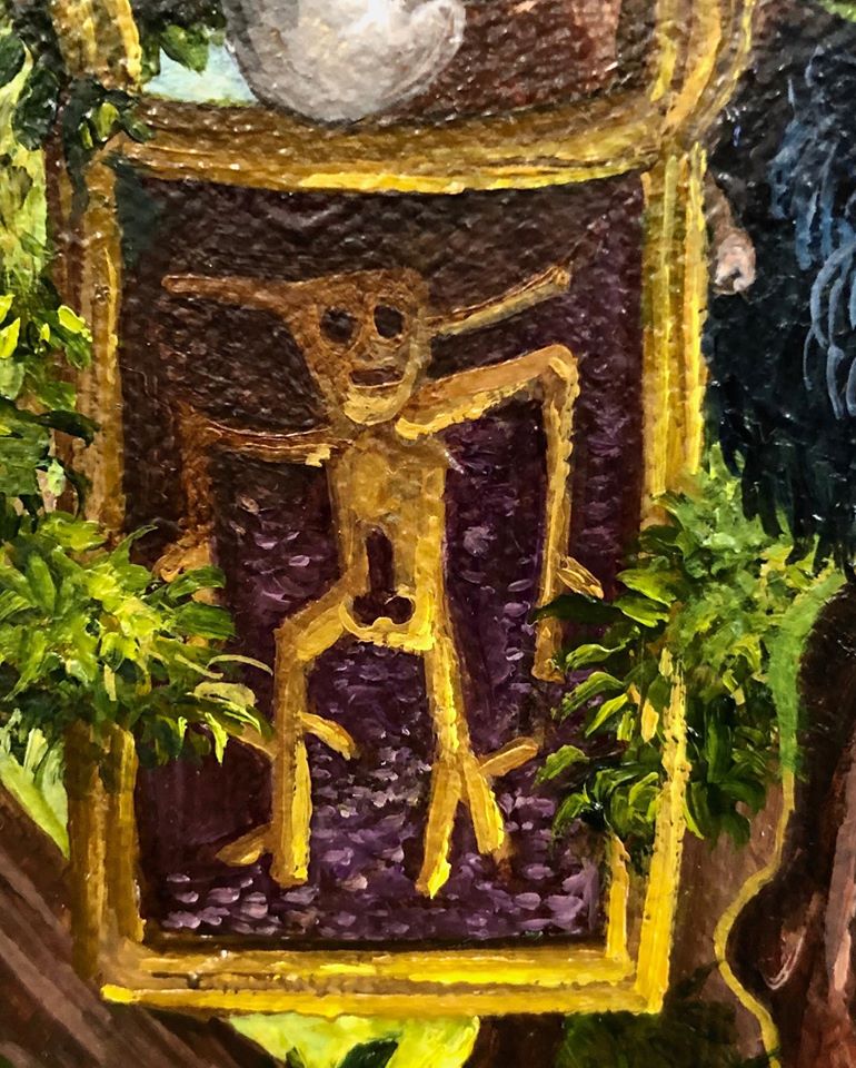 So far that is it in the Fairyfeller realm, more fairyfellers are on the way. Right now however I have returned to painting , stitching is hard work, my fingers begin to ache and the fabric and needle pricks have caused some damage to my fingertips. So for now this fairyfeller is at the easel.