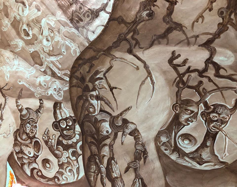The Mandrake’s cape was inspired by a detail from my latest painting (previous post). Cross pollination of ideas , across mediums, is a common occurrence in my studio.
