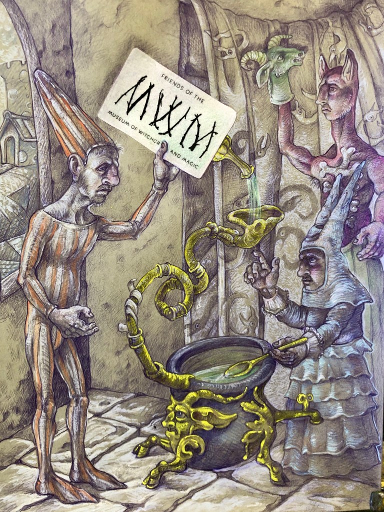 Backstory to the drawing is that mymembership card to the Museum of Witchcraft & Magic in far off Cornwall arrived the other day . I’d love to visit , dearly wish to see that land of Arthur and that rugged coast , but with travel restrictions firmly in place for the foreseeable future , and frankly budget concerns, that isn’t likely anytime soon. So for now , this dedication drawing .