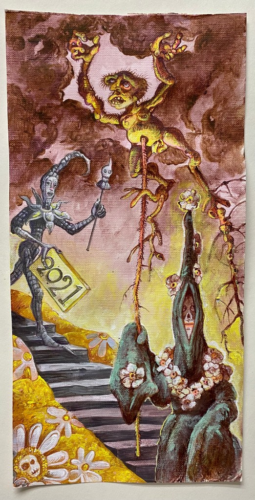 2020, good riddance 2020 gouache on canvas 12 by 6 inches