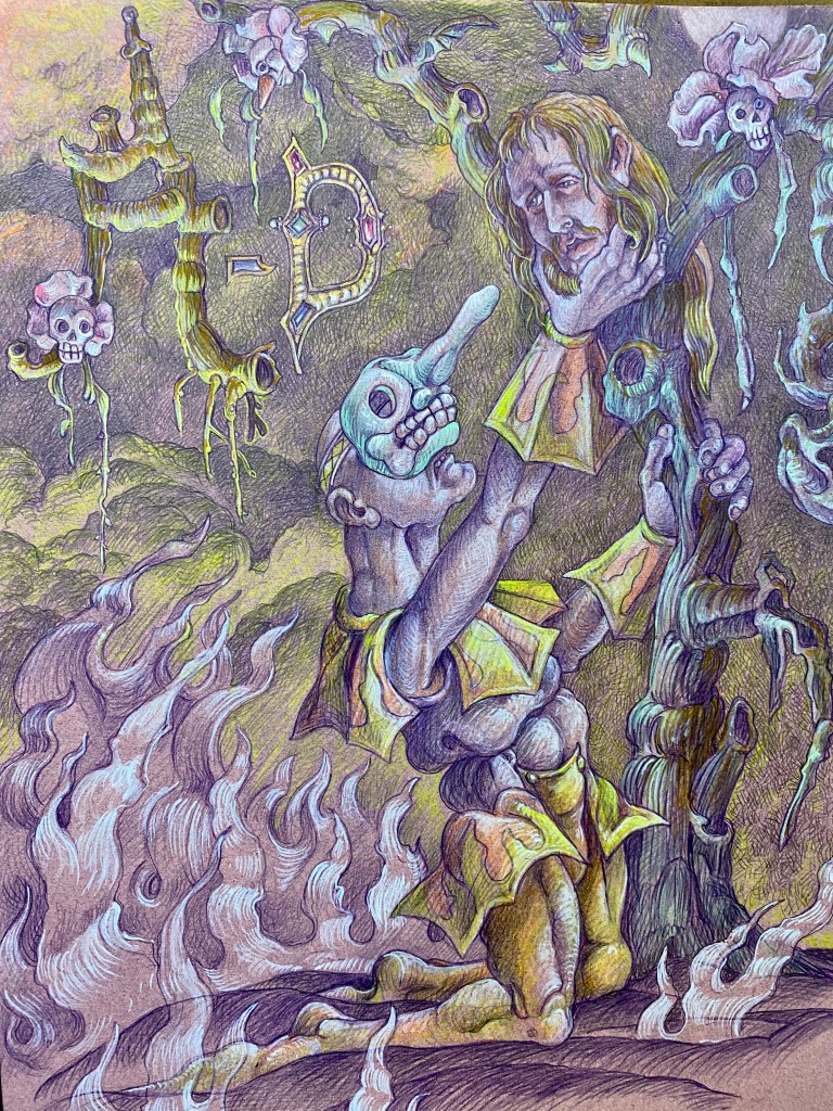Previous Image Next Image AD A-D, Maiden Blood “Lord One Death hangs the head of a slain warrior in the dead tree by the road…”