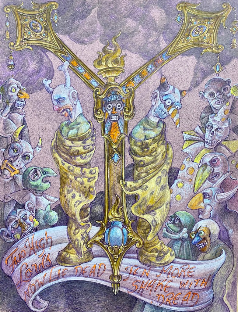 “Kill me, then make me live again…But One Death does not revive and his heart is cast before his throne. Next we take the heart of Seven Death. Two High Lords now lie dead. Ten more shake with dread.”