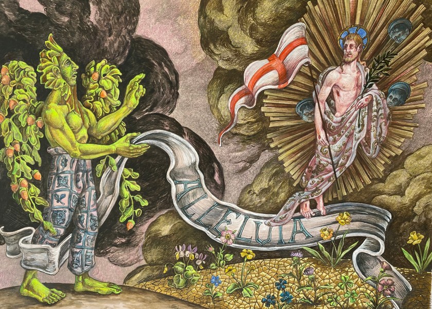 Previous Image Next Image IMG_2089 (He has Risen) & All the Earth Rejoices 2023 Graphite and colored pencil , gouache on illustration board 15 by 30 inches