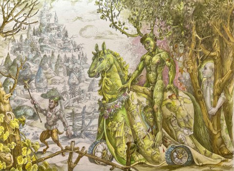 Previous Image Next Image drawing Working drawing for The Adolescence of the Green Knight 25th June 2024 watercolor and graphite on illustration board 16 by 20 inches
