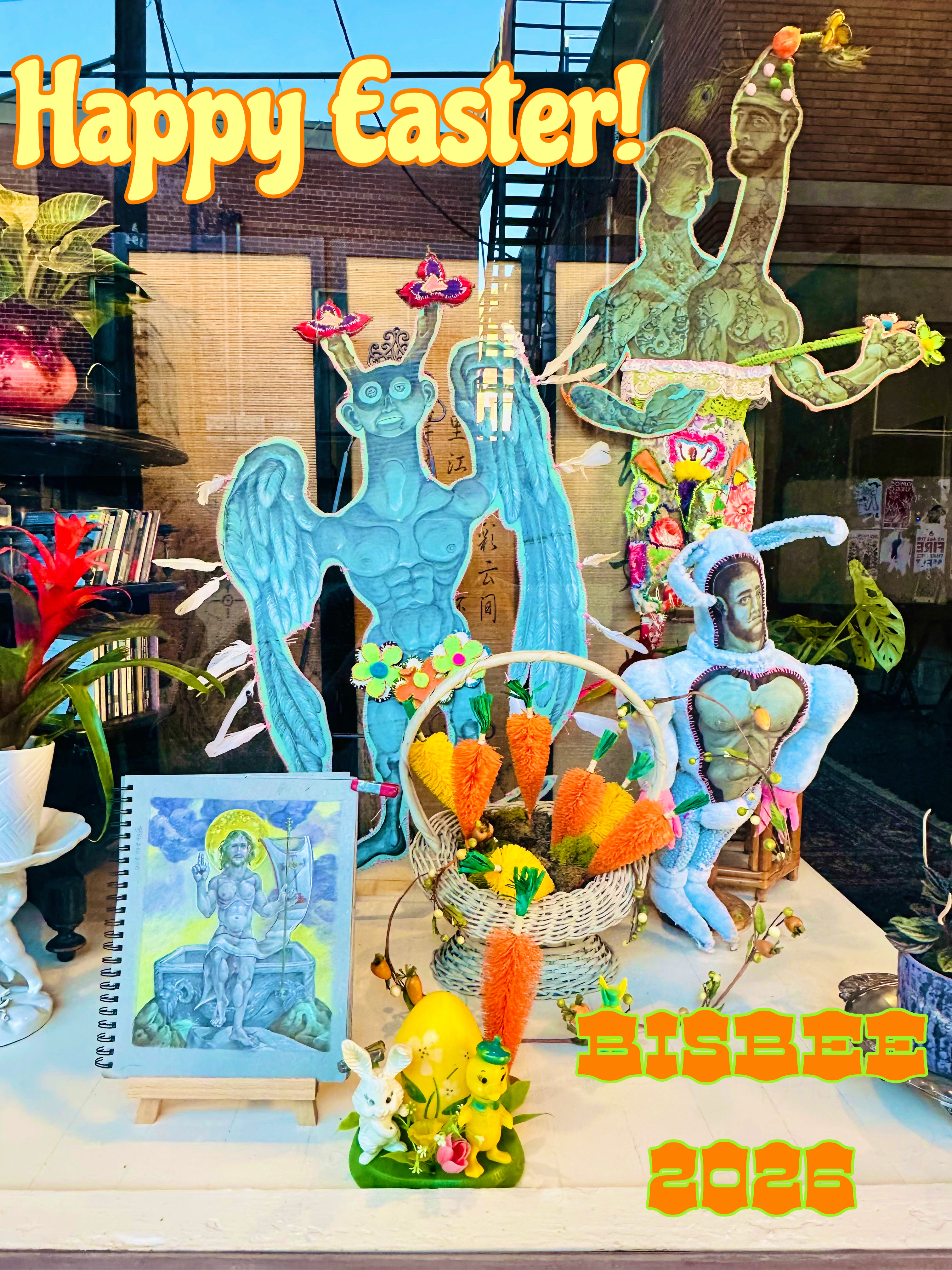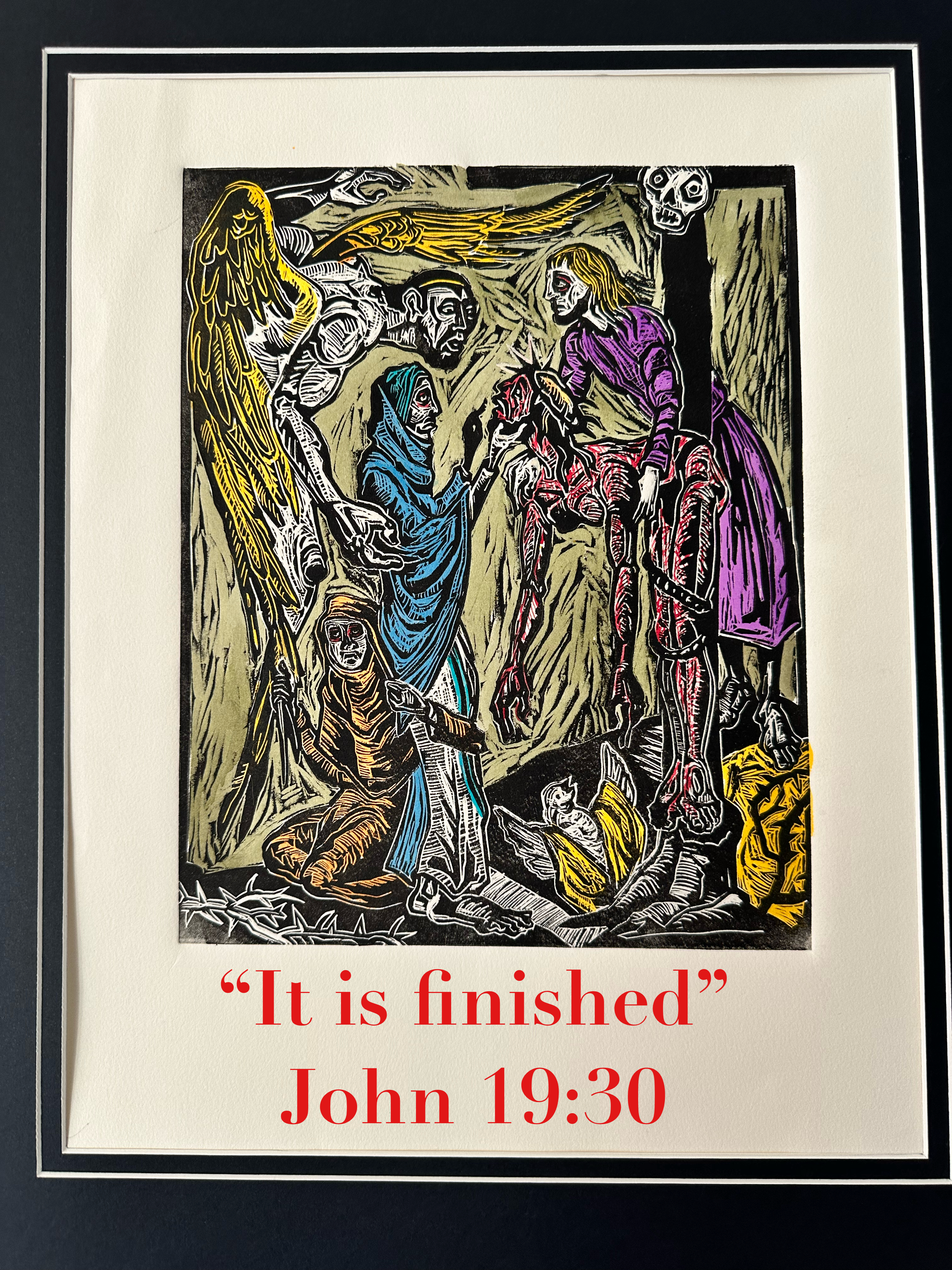 Good Friday relief print, “The Descent from the Cross” ink on paper, hand colored 2026“Descent from the Cross”, inspiration for relief print above.Studio window display 8 Shearer Ave., Bisbee, AZ Easter 2026