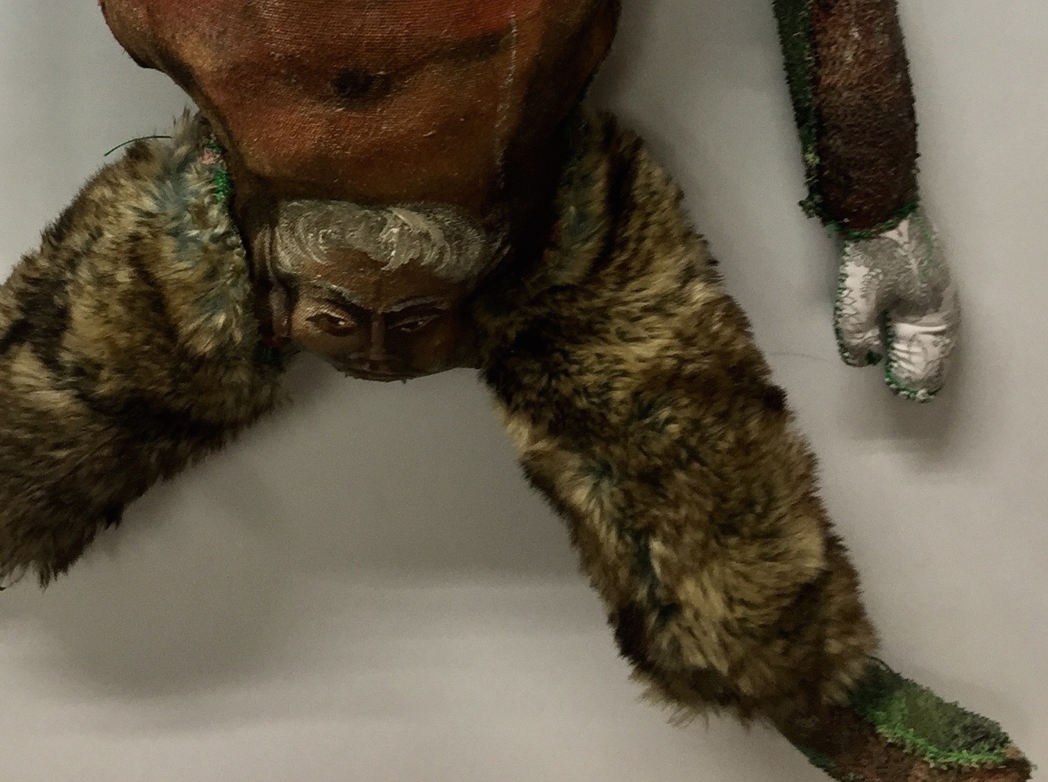 So compelling do I find the Green Knight in general that I have returned to the theme Wildmen, Wodewose and Greenmen time and time again, needled with thread and rag and upon canvas and panel. At some point last summer I decided a more finished painting was in order, but of a younger, prettier wild man. Being greatly inspired by the exquisite panel painting and illuminations of the northern renaissance, I hoped to capture that pictorial storytelling missing from the watercolor sketch .