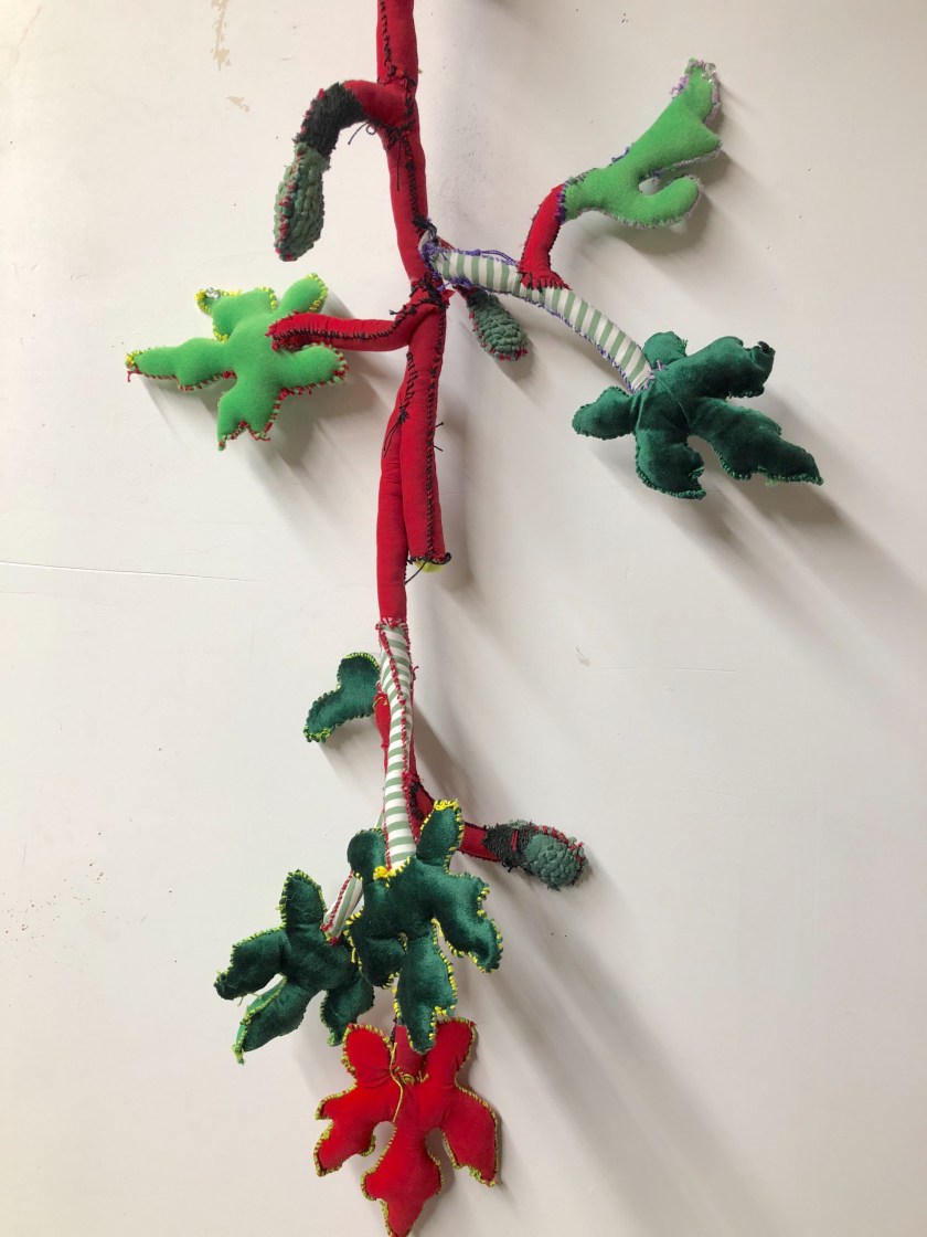 That aside, this latest tapestry/painting is part of consistent floral motif throughout my Fairyland body of work (and I imagine will continue for quite some time) and until Fairyland is installed I will be snipping and sewing away on many elements, but perhaps most especially, flowers.