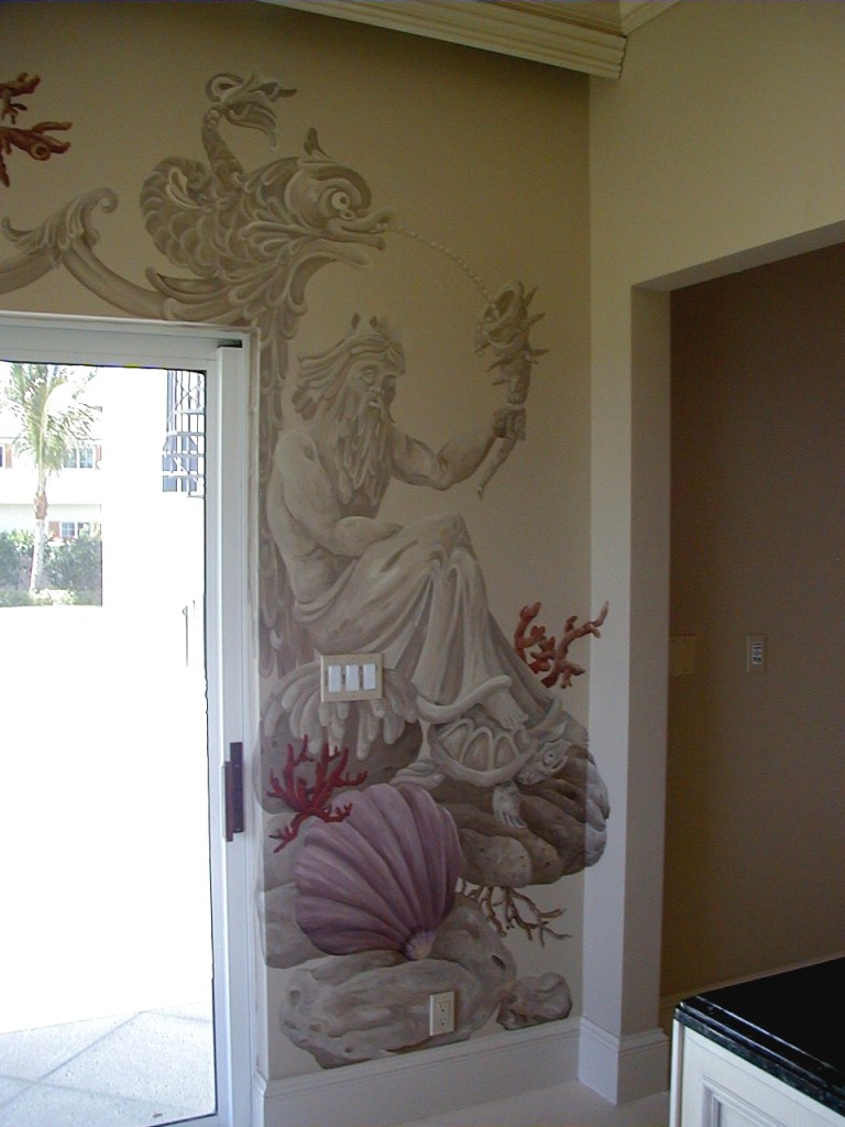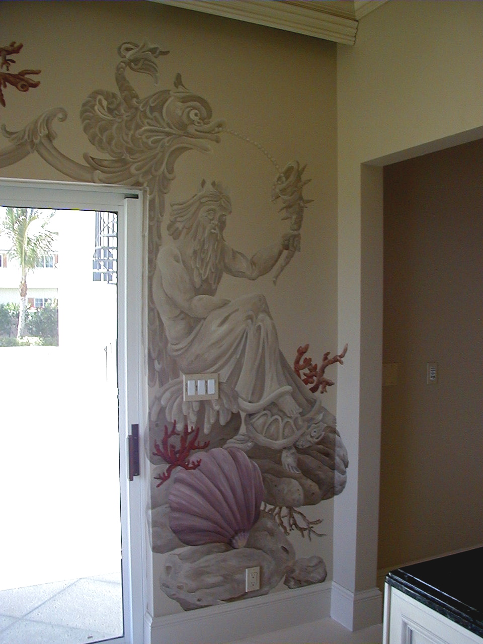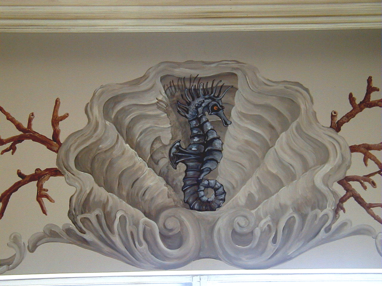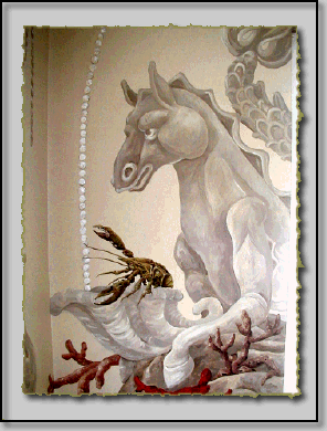 My favorite room was the Breakfast Room, the Atlantic lapping at the door, and one of those ostentatious mega fishtanks front and center. But Loreen and I had a ritual at day’s end, drink martinis and feed “Joe’s” fish. She was squeamish about the live fish food so she thought her vegetarian friend should have the honor. Suitably lubricated we would giggle and fall in love with the finned fellows. When one died (they were always dying) we were heartbroken. We decorated the room with a grotto theme, it is far more elaborate than what I have posted, but enough is enough.
