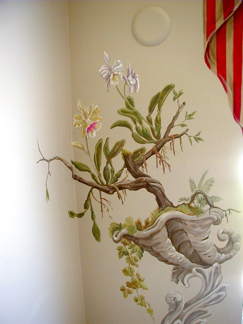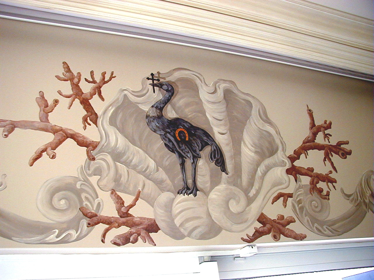 It is an ostentatious pile, 20-30 thousand square feet, I can’t keep track of that sort of thing. But it will most likely be torn down, my frivolous decorations with it: Jack climbing his Beanstalk as you ascend the elevator; the pretty golden mermaids in the maid’s bathroom; Maya’s feline portrait a la Turque over the bidet, all will go. That’s the price you pay with decorative work, it’s ephemeral.