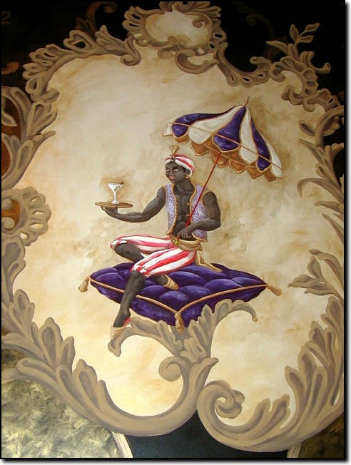 As I mentioned Loreen wasn’t at all politically correct, quite the opposite. Her husband didn’t hold strict politically correct views either. When decorating the house powder room a Blackamoor was requested. Blackamoors are considered by many to be a “no-no”, viewed as insensitive concerning racial identity. There is a decorative tradition for this sort of thing, that’s what I told myself , for I also love Blackamoors.
