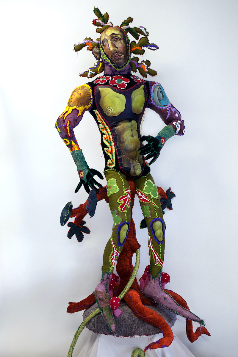 So compelling do I find the Green Knight in general that I have returned to the theme Wildmen, Wodewose and Greenmen time and time again, needled with thread and rag and upon canvas and panel. At some point last summer I decided a more finished painting was in order, but of a younger, prettier wild man. Being greatly inspired by the exquisite panel painting and illuminations of the northern renaissance, I hoped to capture that pictorial storytelling missing from the watercolor sketch .