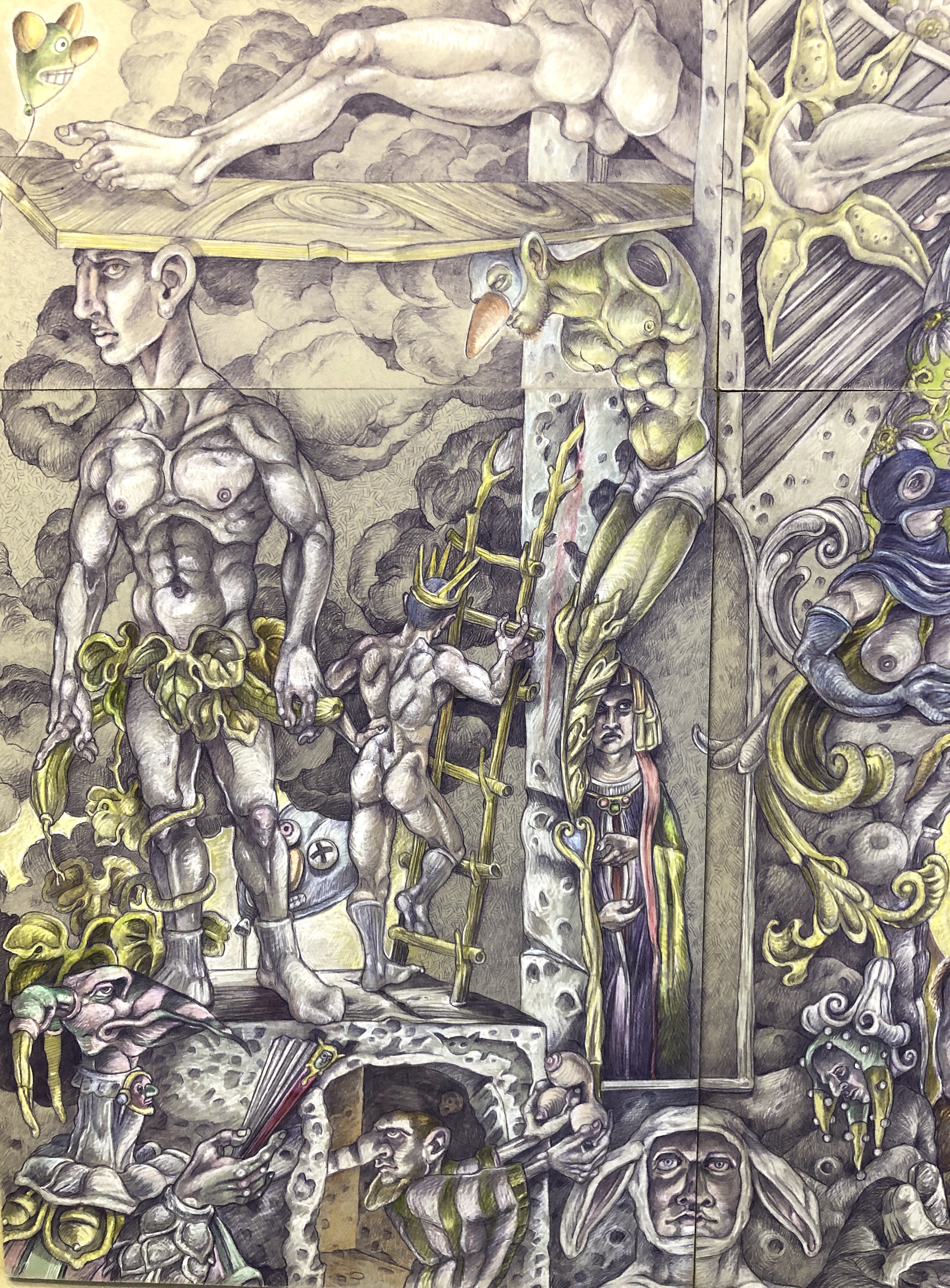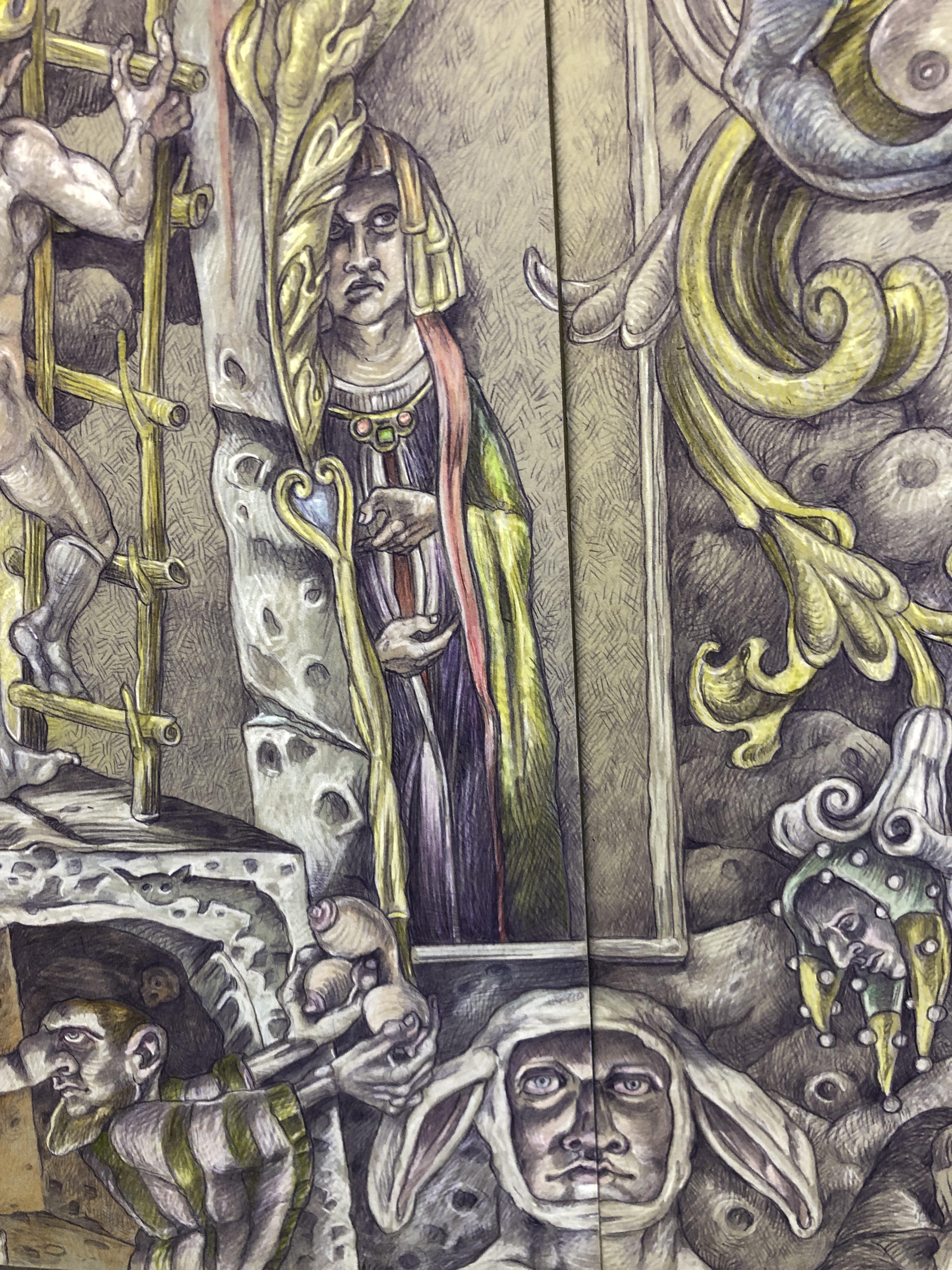 In poring over files I stumbled upon a bit of text I hadn’t recognized, yet I felt it perfectly evoked how I create, the random layering of pattern, image, reference . But who wrote it? After a bit of sleuthing through further files I discovered I’d written it. First questioning the state of my memory I was pleased I had saved this snippet. I will have to review it more closely but I feel upon initial reading it will easily integrate into a project I’d set aside, Saint Anthony & the Desert of Tears.