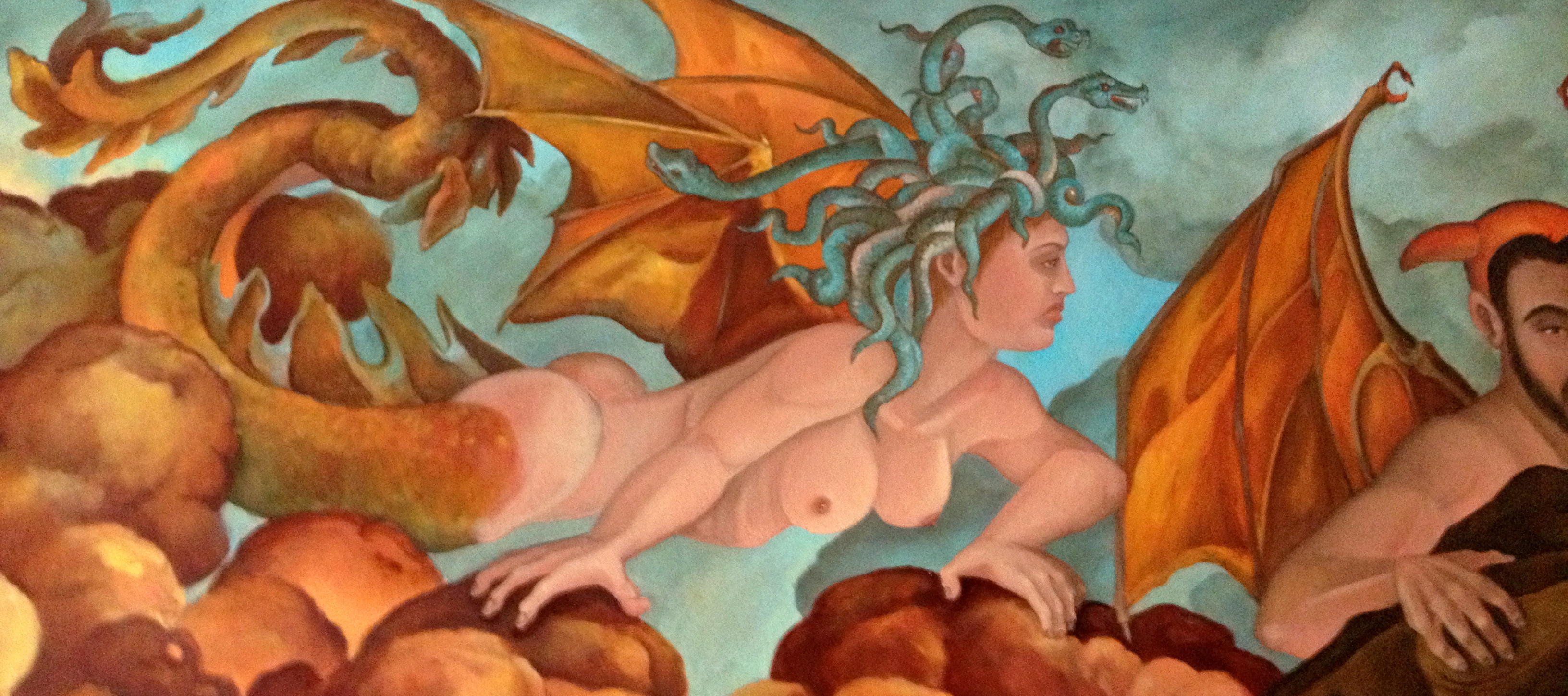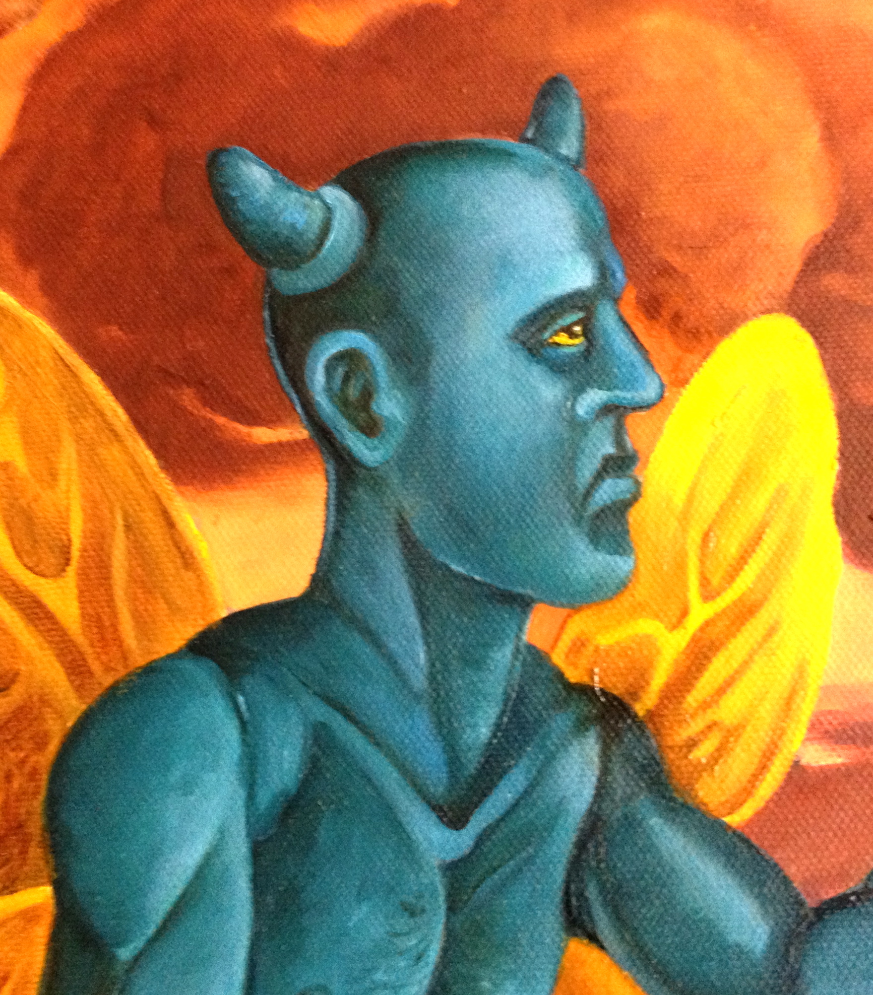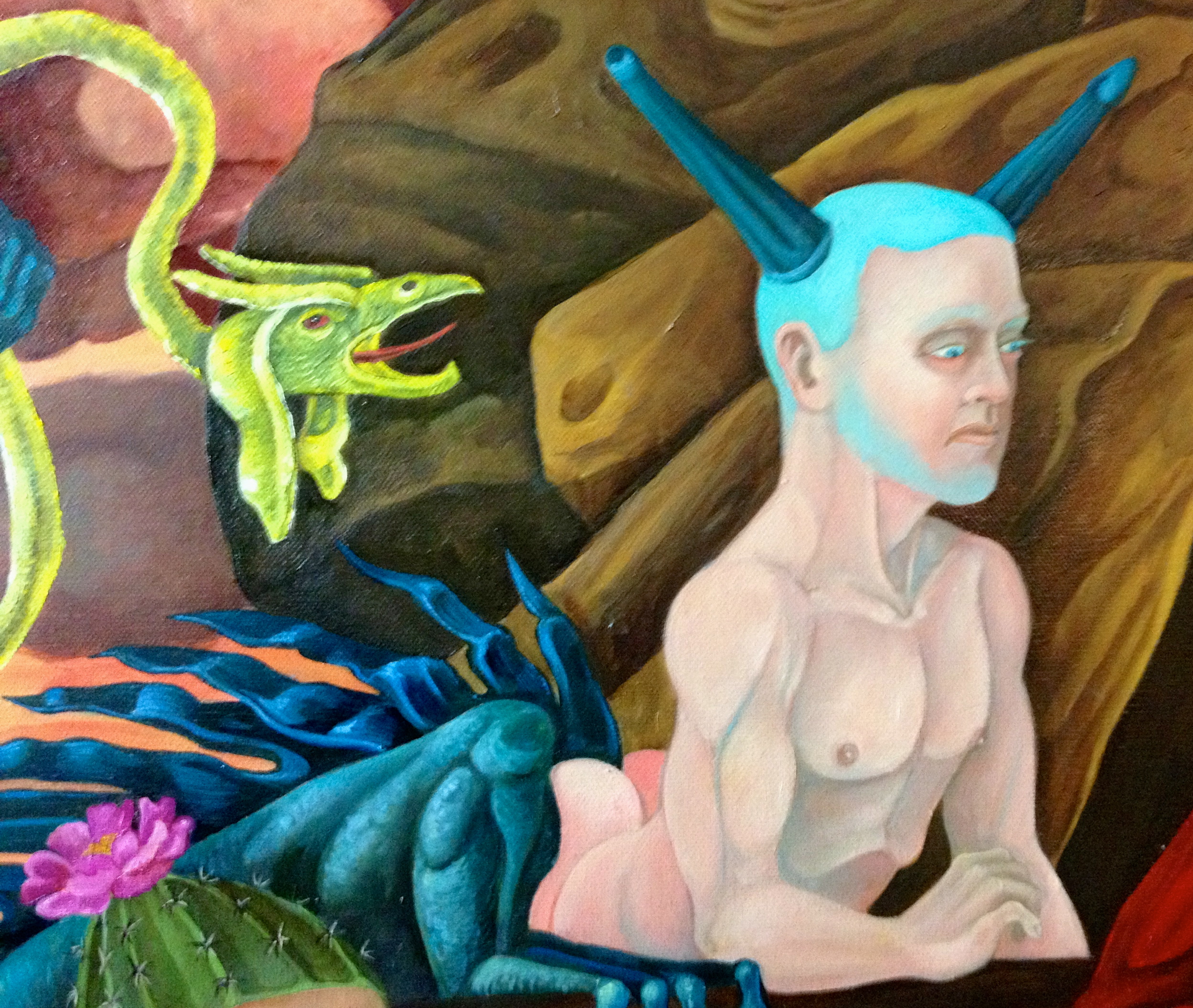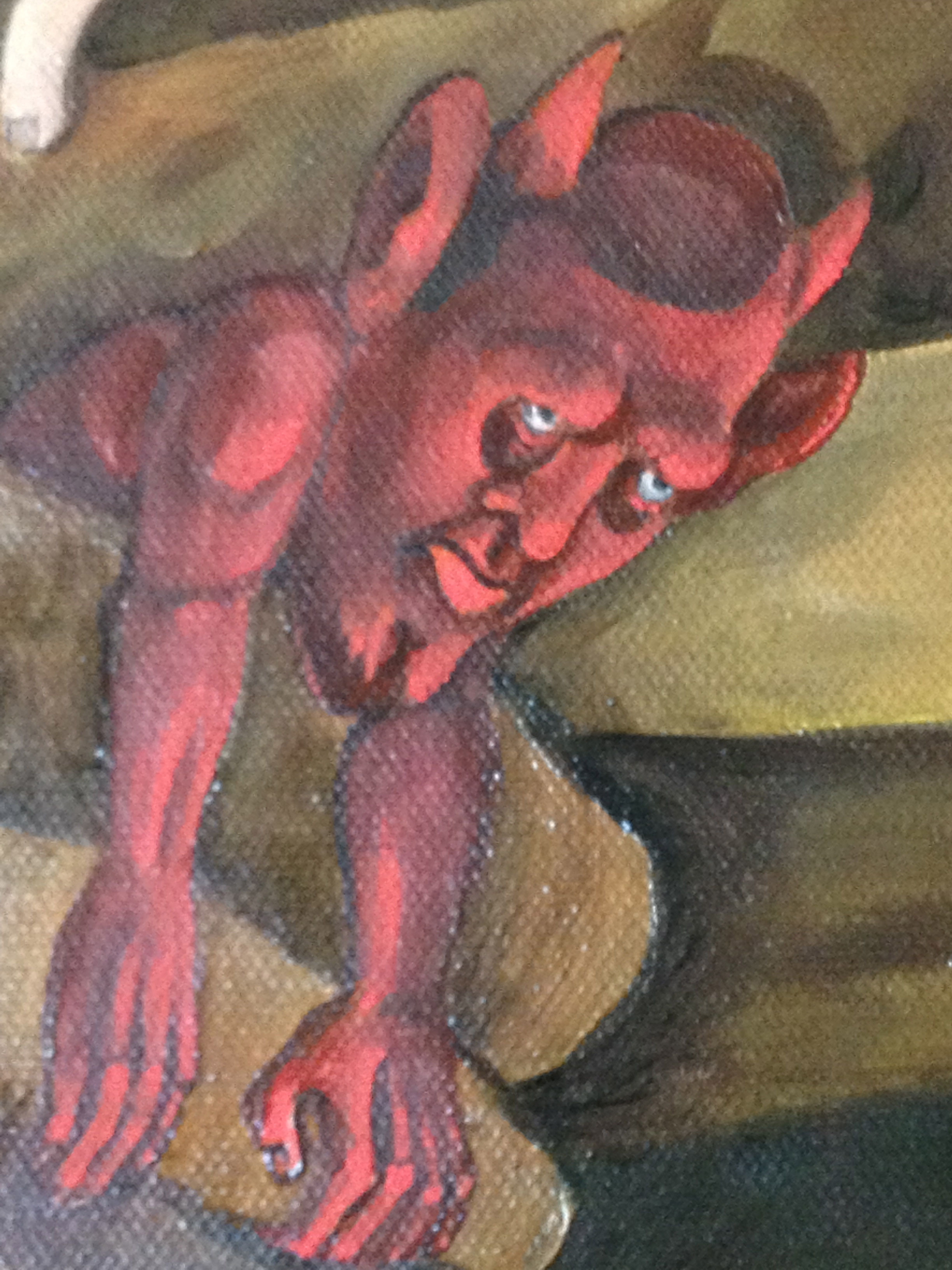 This painting unlike the last Temptation of St. Anthony of the Desert ( link: HERE) is a small little oil painting, only 16 by 20 inches. I painted smaller frankly because I am running out of studio space and I have two other large canvases that I am working on occupying two easels .