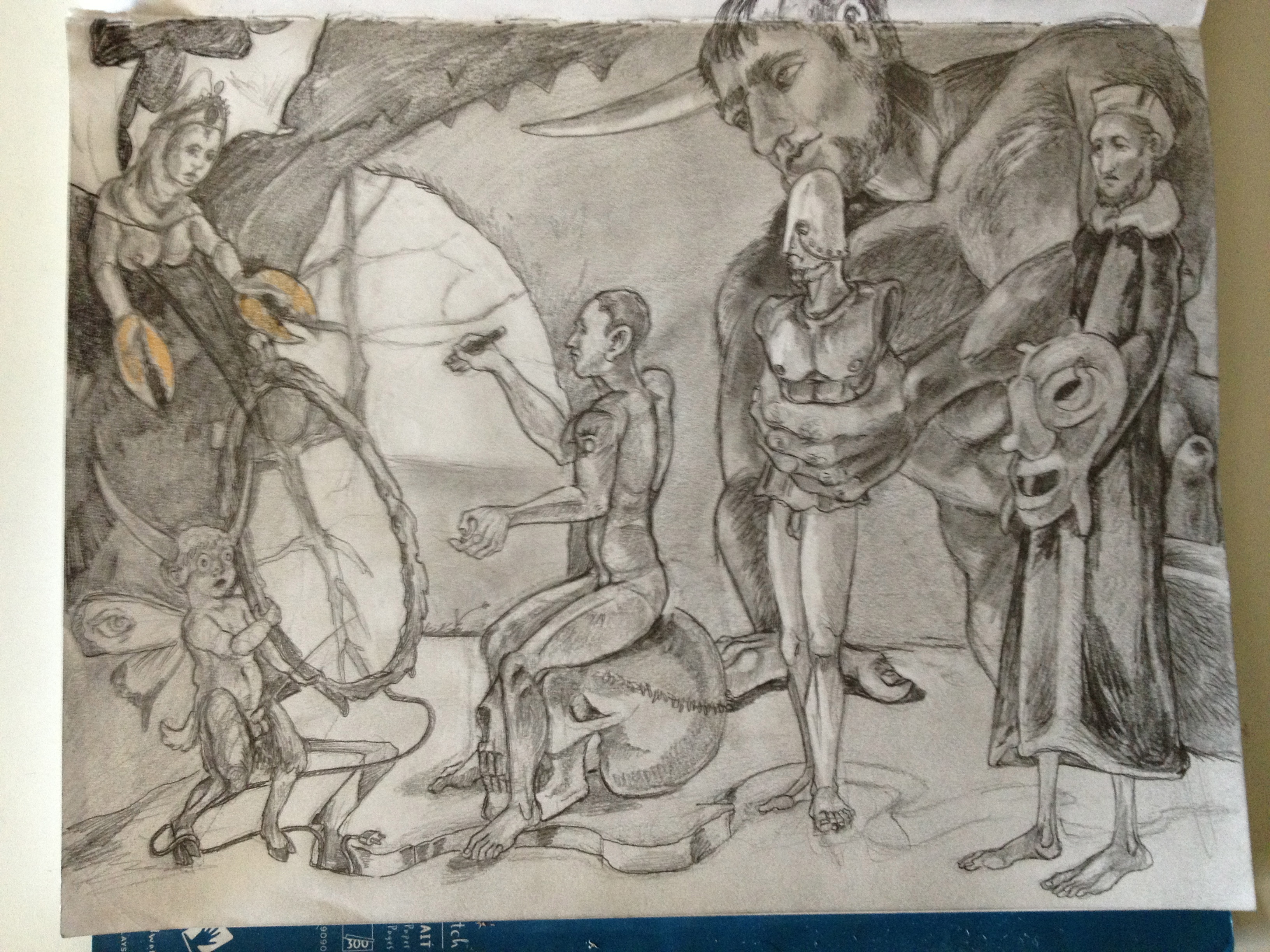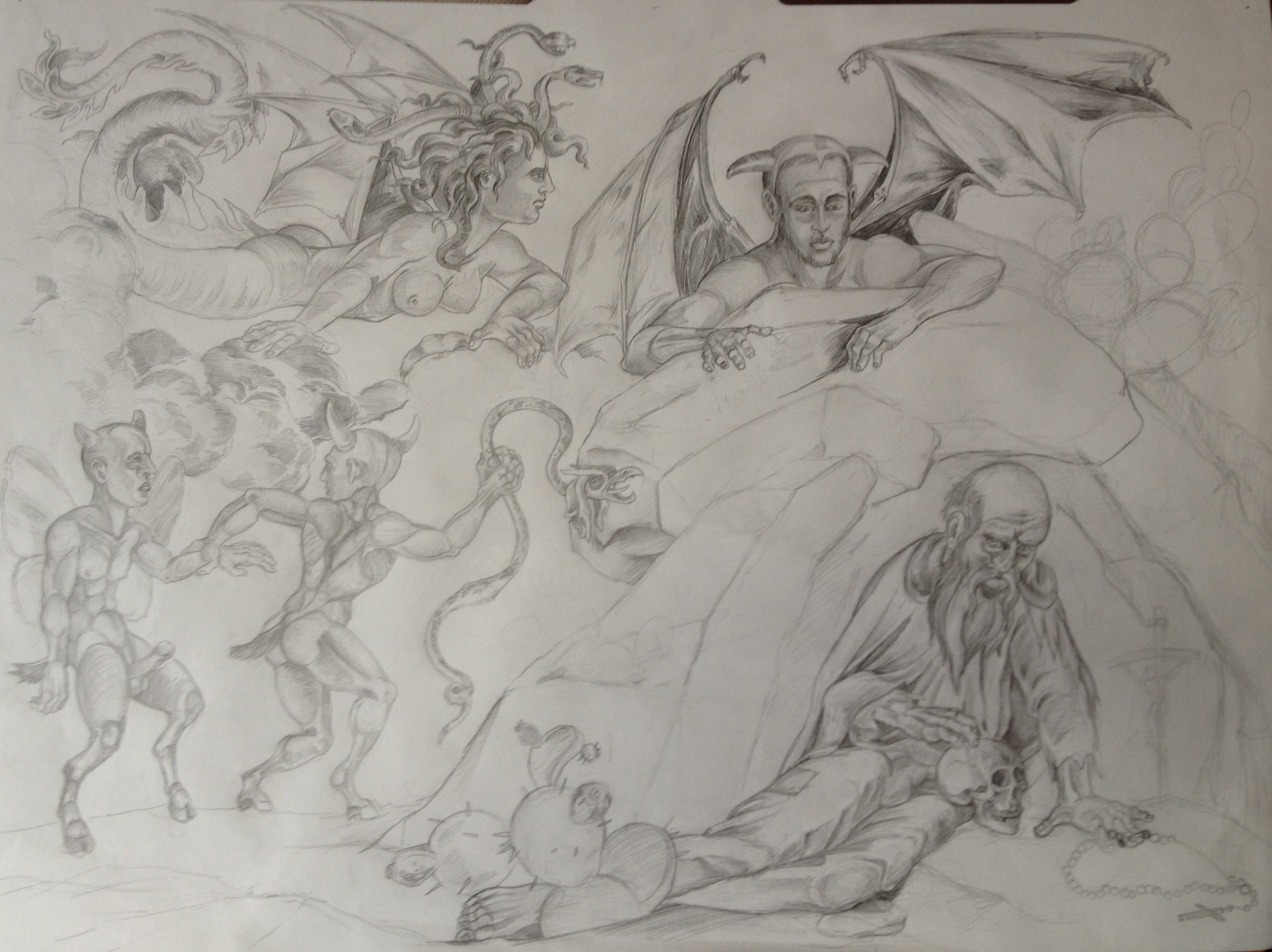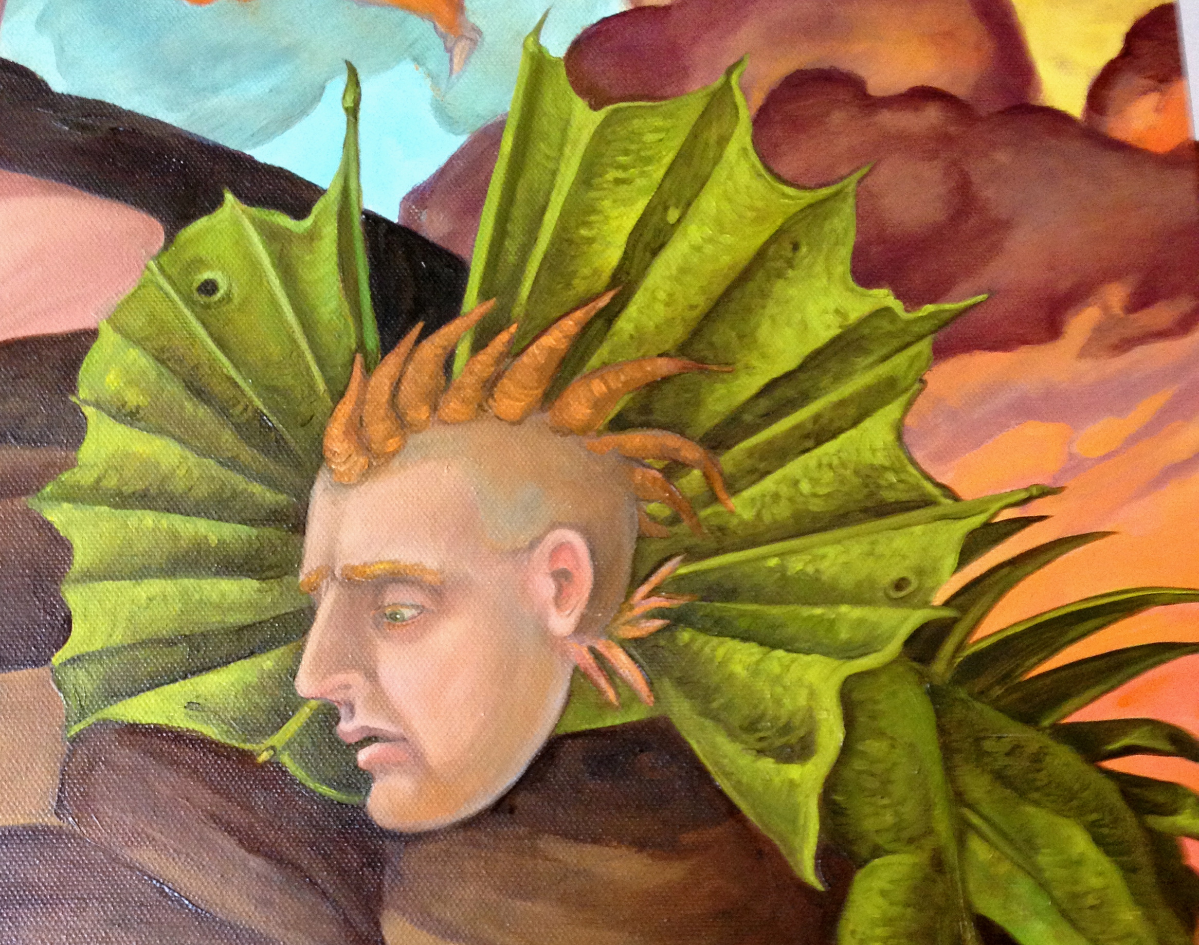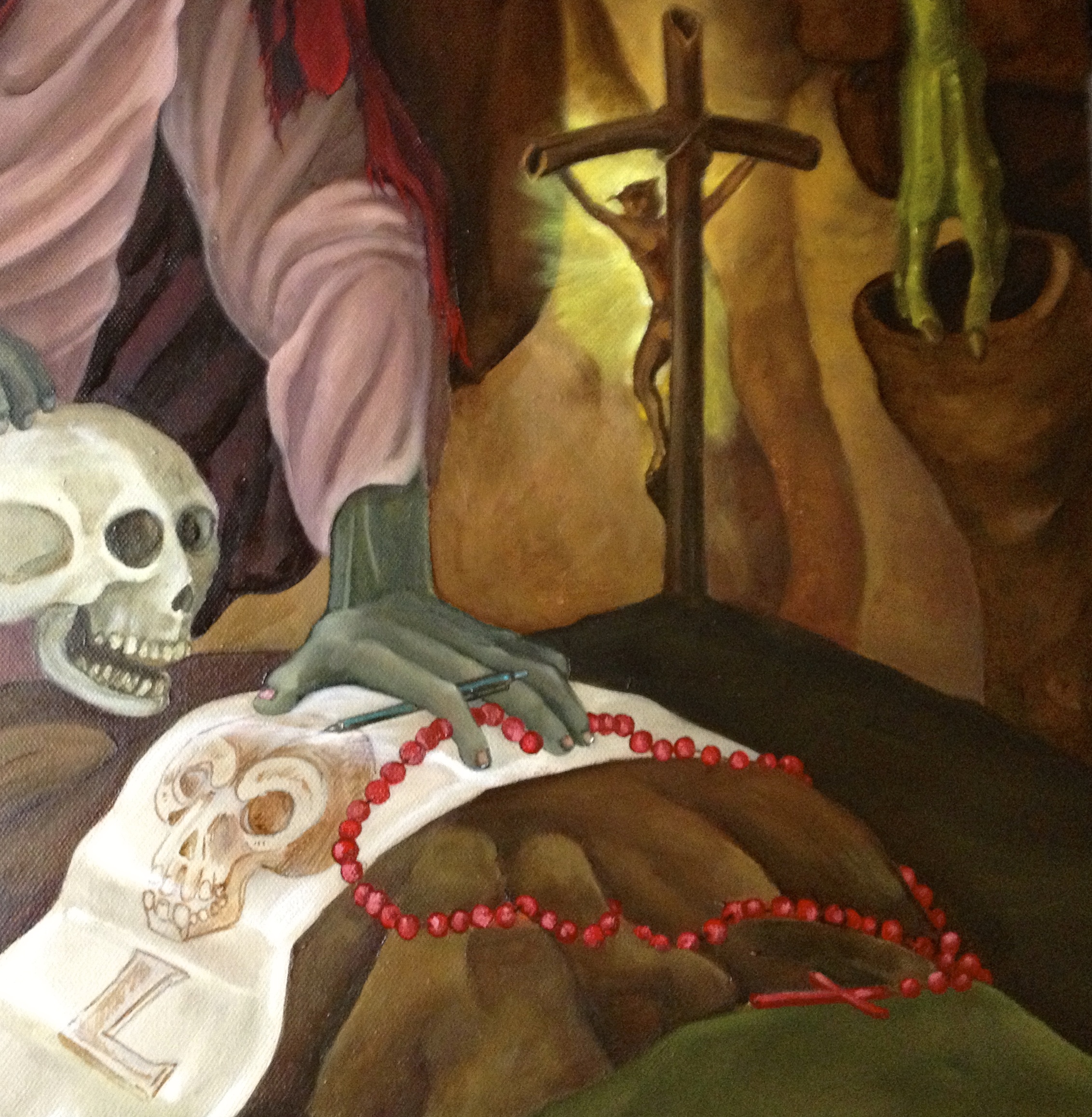 This painting unlike the last Temptation of St. Anthony of the Desert ( link: HERE) is a small little oil painting, only 16 by 20 inches. I painted smaller frankly because I am running out of studio space and I have two other large canvases that I am working on occupying two easels .