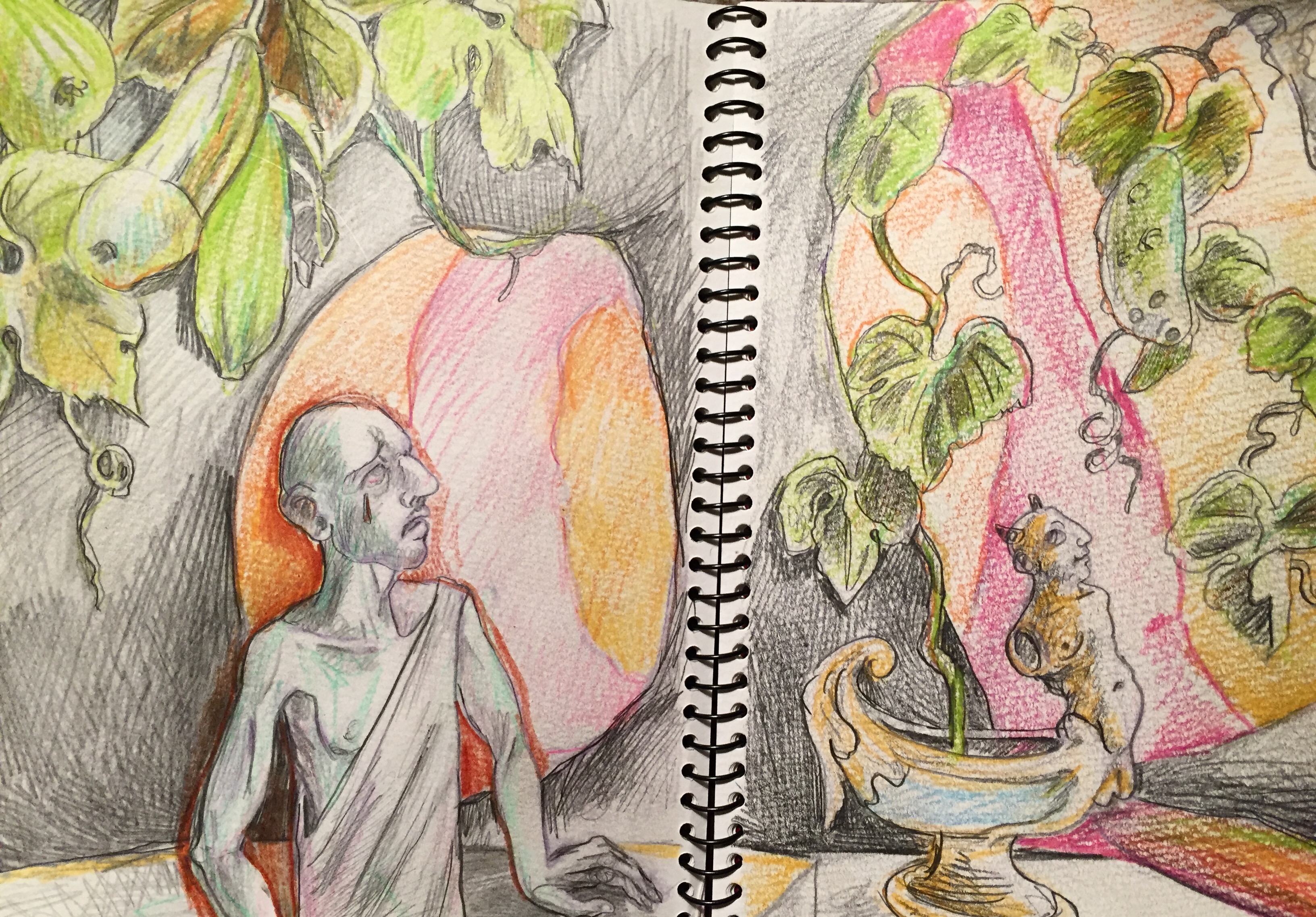 I was also interested in foretelling the Arthurian knight Sir Gawain’s sinister, often numinous interactions with the future Green Knight ( a brief rundown here :https://en.wikipedia.org/wiki/Green_Knight ).
