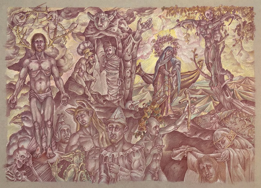 Previous Image Next Image The Way of the Cross The Way of the Cross 2019 Sanguine and colored pencil on toned paper 18 by 24 inches