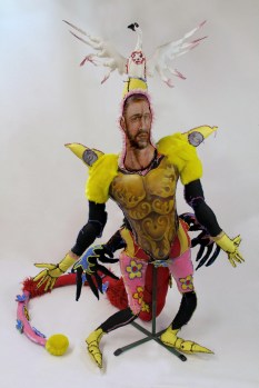 Mixed Media, acrylic paint on canvas, recycled fiber, floss, poly-fil